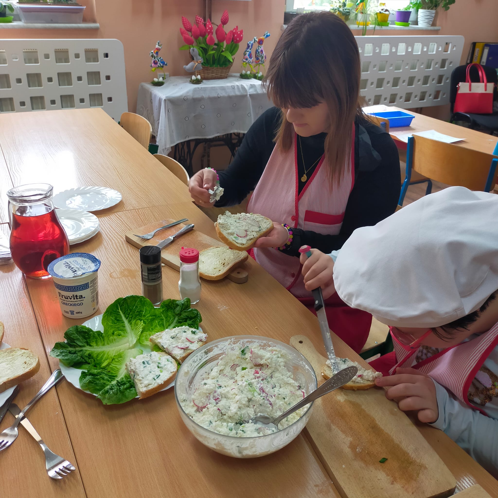 Przedwiosenne śniadania w naszej szkole obfitowały w wiele witamin. Na kanapkach, twarożkach oraz w sałatkach królonowały nowaijki zakupione na targu, ofiarowane przez rodziców oraz wyhodowane na parapetach naszych klas.