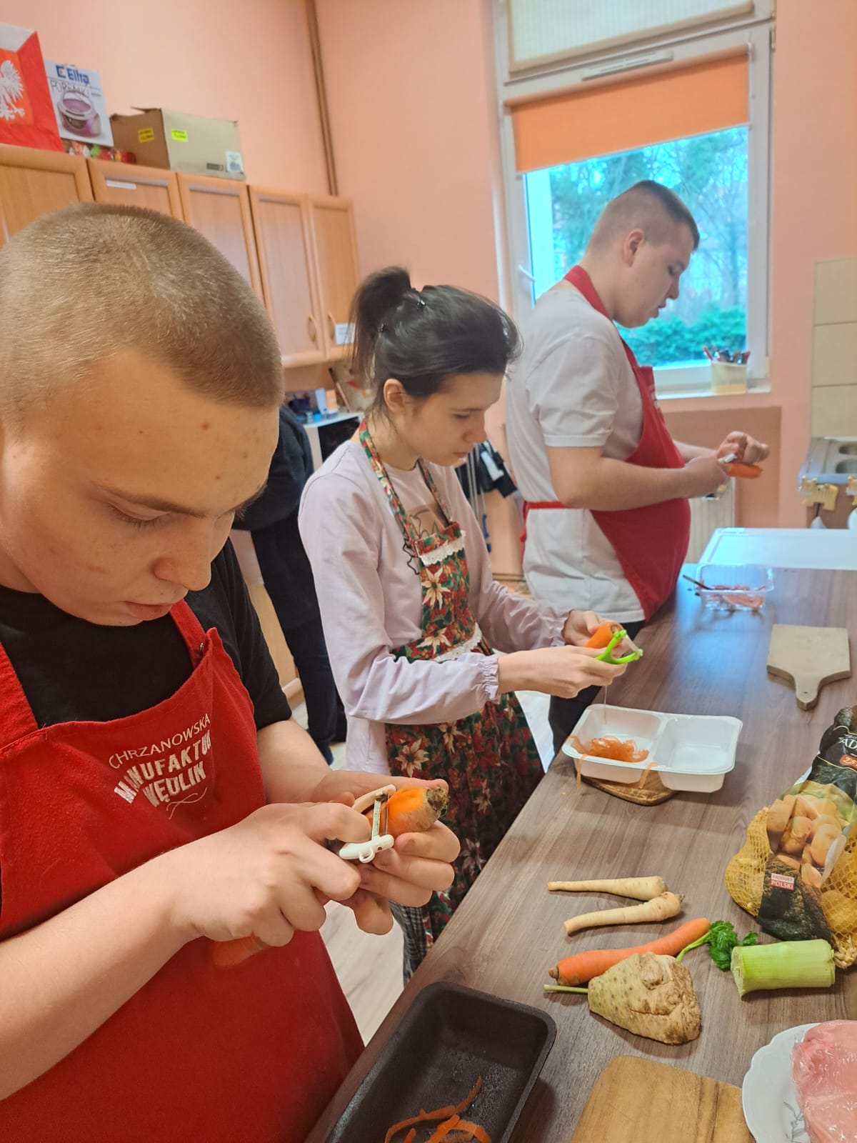 W ramach programu Szkoła Promująca Zdrowie wdrażamy uczniom zasady zdrowego żywienia. Uczniowie klas przysposabiających do pracy we wrześniu zrealizowali zadanie pt. „Przetwory owocowo- warzywne”. Podczas zajęć kulinarnych powstały pyszne powidła śliwkowe, musy jabłkowe, kompoty owocowe, przeciery pomidorowe, ogórki kiszone, buraczki, papryka marynowana, czy sosy pomidorowo- paprykowe. Z wykonanych przetworów powstaną na zajęciach w kolejnych miesiącach zdrowe i smaczne zupy, pizzę, sałatki i II dania. Witaminy zamknięte w słoiczkach wzmocnią naszą odporność i zdrowie w zimowych miesiącach.