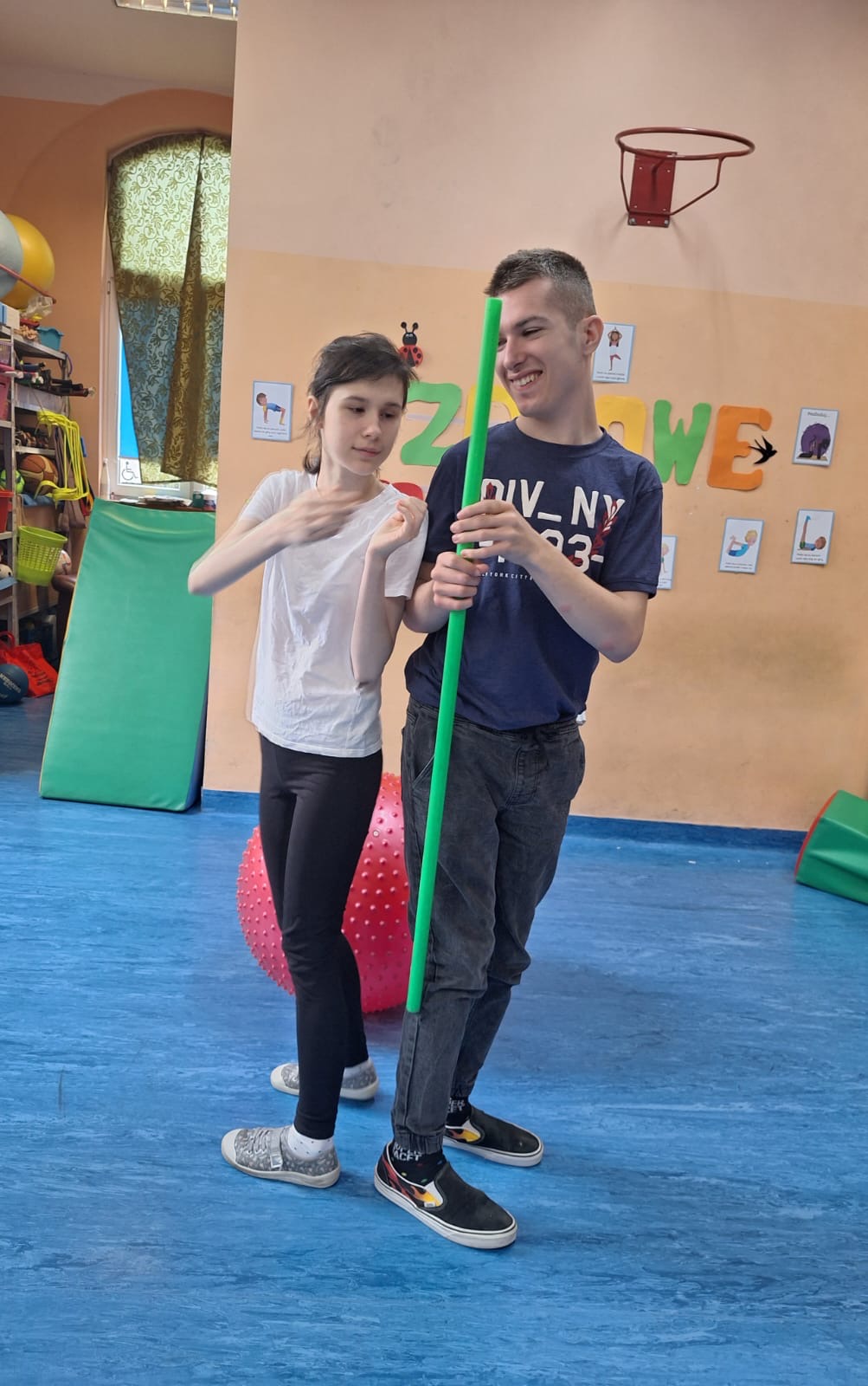 Podopieczni z wielkim zaangażowaniem pracują nad wzmocnieniem mięśni posturalnych odpowiedzialnych za prawidłową postawę ciała.